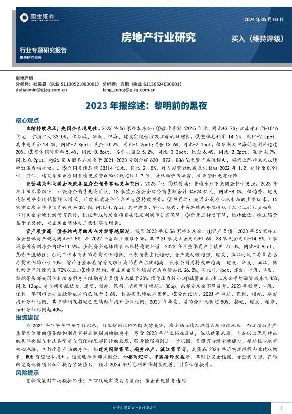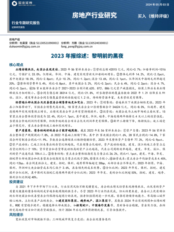 【国金证券】【20240503】房地产行业2023年报综述:黎明前的黑夜-23页