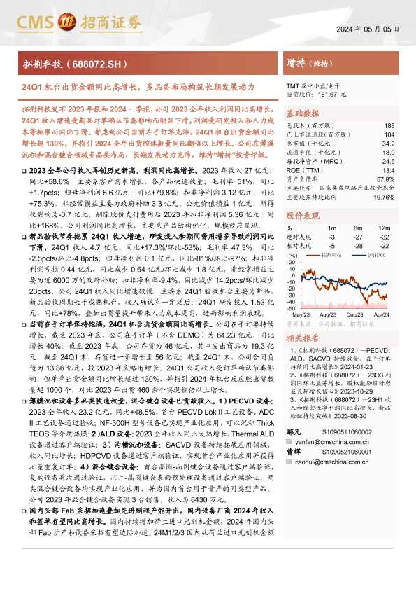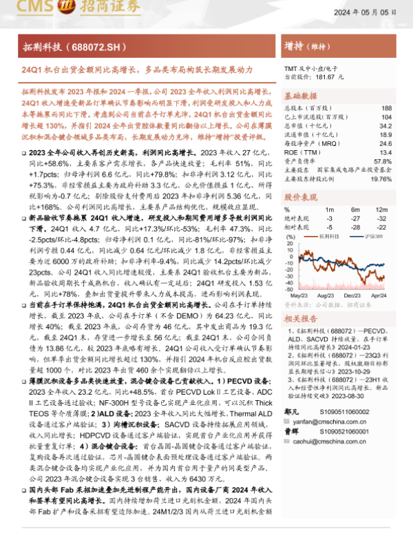 【海通证券】【20240505】拓荆科技(688072)24Q1机台出货金额同比高增长,多品类布局构筑长期发展动力-24页