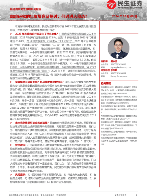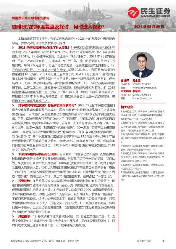 【民生证券】【20240509】新消费行业研究之咖啡系列报告:咖啡研究的年度复盘及探讨,何时进入稳态?-27页