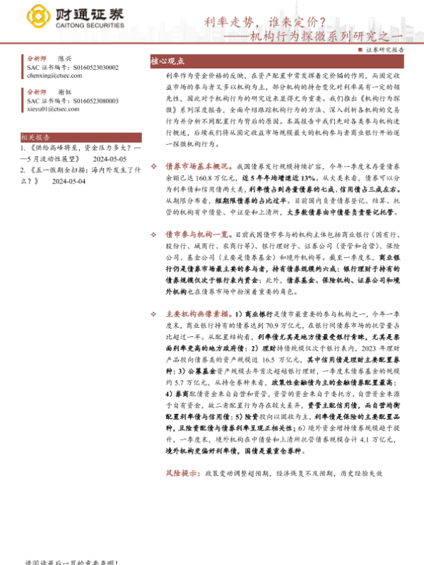 【财通证券】【20240508】机构行为探微系列研究之一:利率走势,谁来定价?-16页