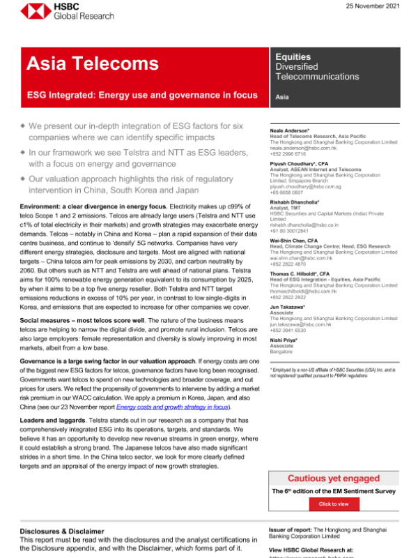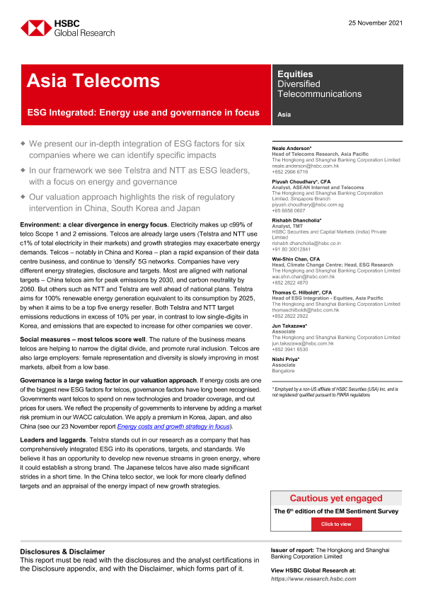 【The Hongkong and Shanghai Banking Corporation Limited】【20211125】HSBC-亚太地区电信行业-ESG整合:重点关注能源使用和治理-40页