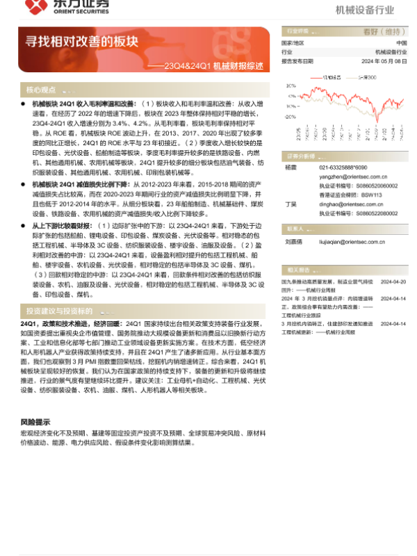 【东方证券】【20240508】机械设备行业23Q4&24Q1机械财报综述:寻找相对改善的板块-25页