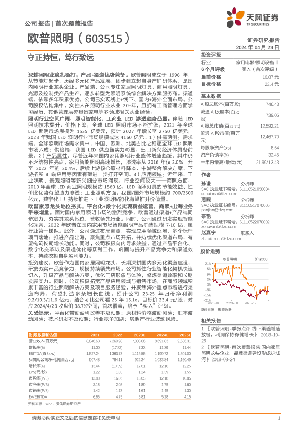 【天风证券】【20240424】欧普照明-守正持恒,笃行致远-30页