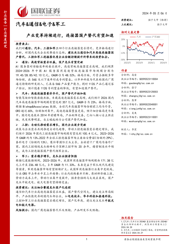 【国联证券】【20240506】汽车&通信&电子&军工行业深度研究:产业变革持续进行,连接器国产替代有望加速-44页