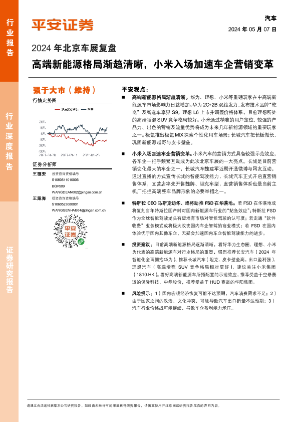 【平安证券】【20240507】汽车行业2024年北京车展复盘:高端新能源格局渐趋清晰,小米入场加速车企营销变革-15页