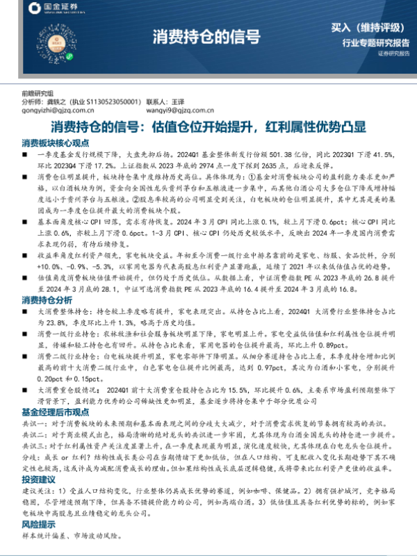 【国金证券】【20240502】消费行业消费持仓的信号:估值仓位开始提升,红利属性优势凸显-36页