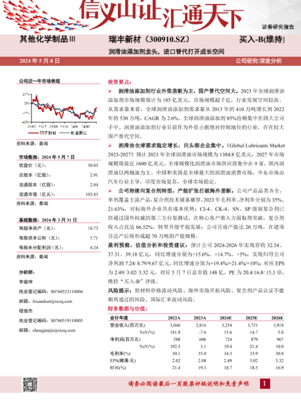 【山西证券】【20240508】瑞丰新材(300910)润滑油添加剂龙头,进口替代打开成长空间-41页