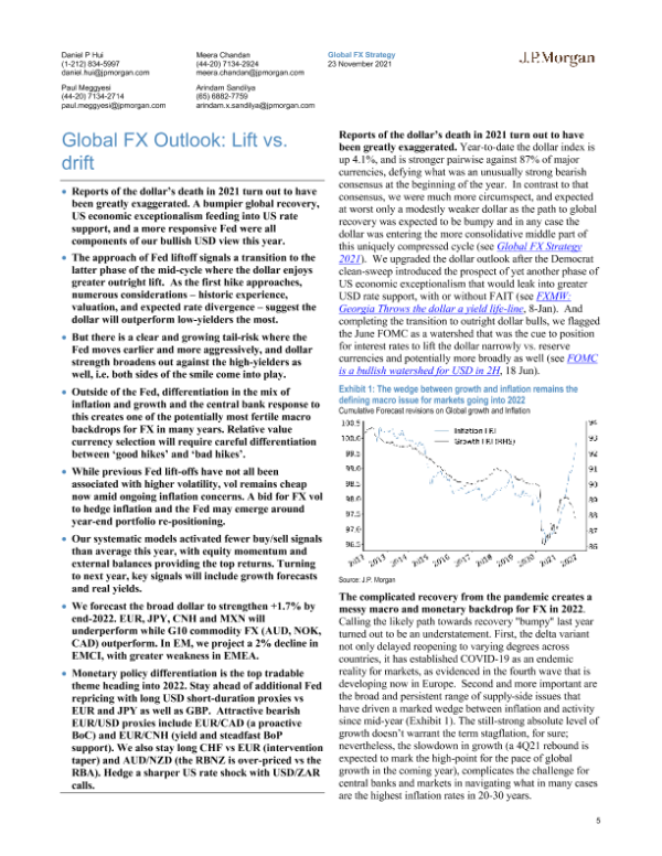 【J.P. Morgan】【20211123】全球外汇前景:上升VS漂移-22页