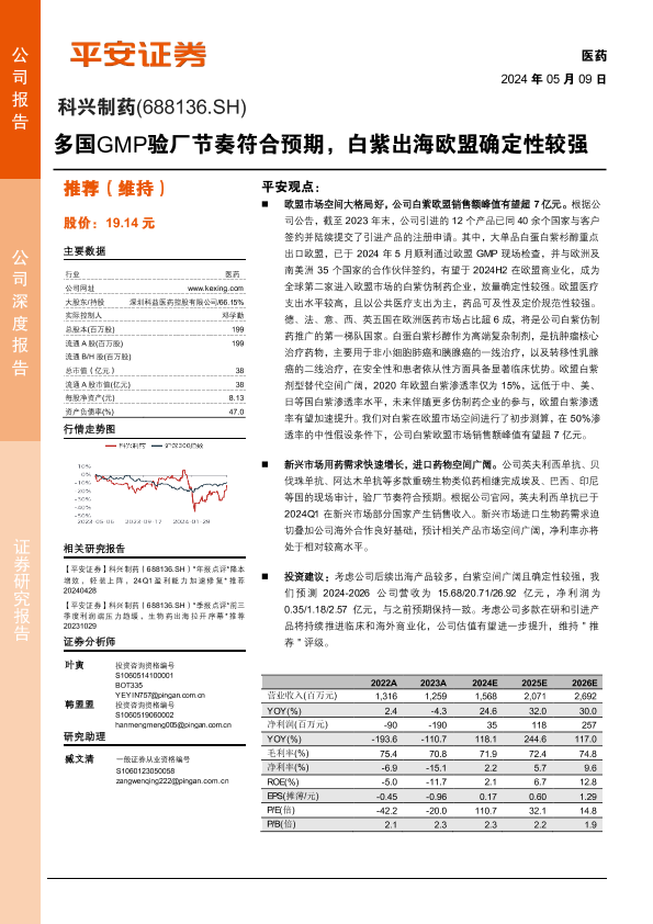 【平安证券】【20240509】科兴制药(688136)多国GMP验厂节奏符合预期,白紫出海欧盟确定性较强-16页