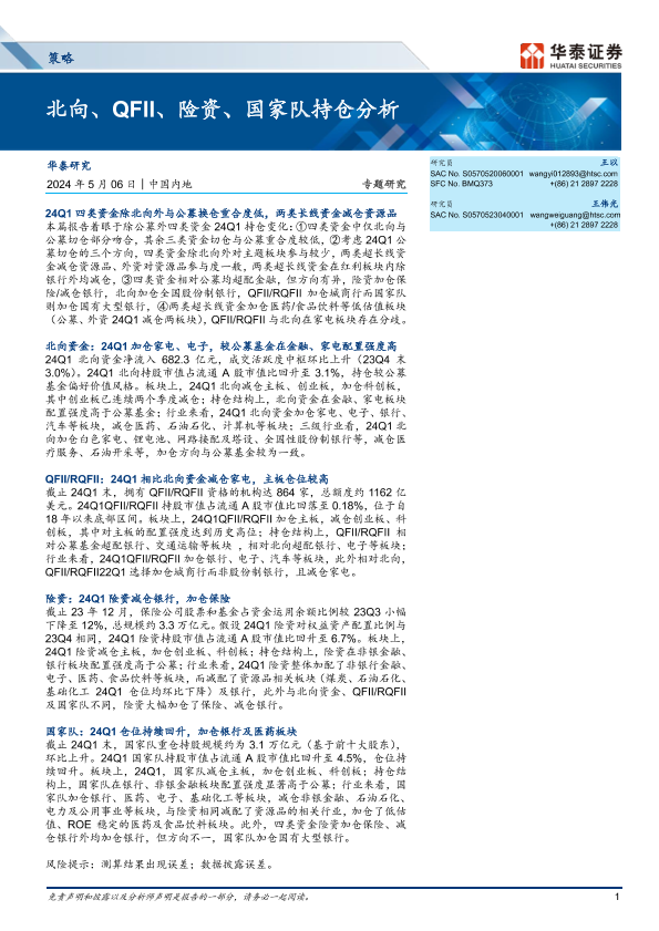 【华泰证券】【20240506】策略专题研究:北向、QFII、险资、国家队持仓分析-17页