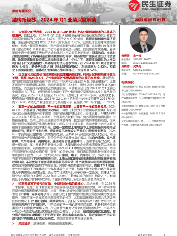 【民生证券】【20240504】策略专题研究:结构新复苏,2024年Q1业绩深度解读-29页