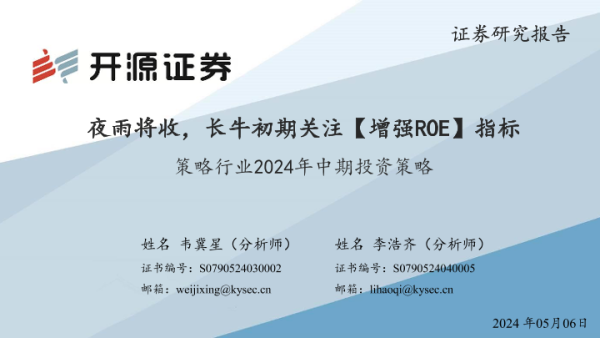 【开源证券】【20240506】策略行业2024年中期投资策略:夜雨将收,长牛初期关注【增强ROE】指标-33页