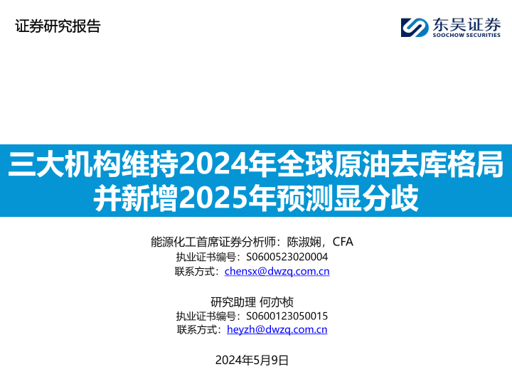 【东吴证券】【20240509】能源化工行业:三大机构维持2024年全球原油去库格局,并新增2025年预测显分歧-39页