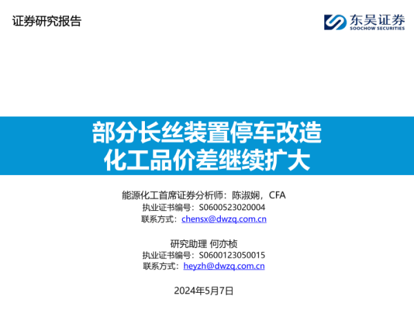【东吴证券】【20240507】能源化工行业:部分长丝装置停车改造,化工品价差继续扩大-43页