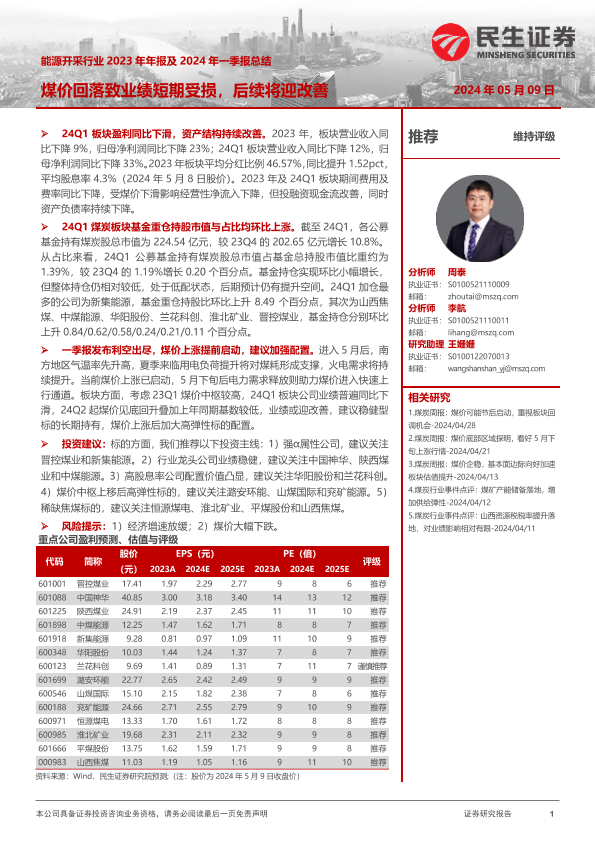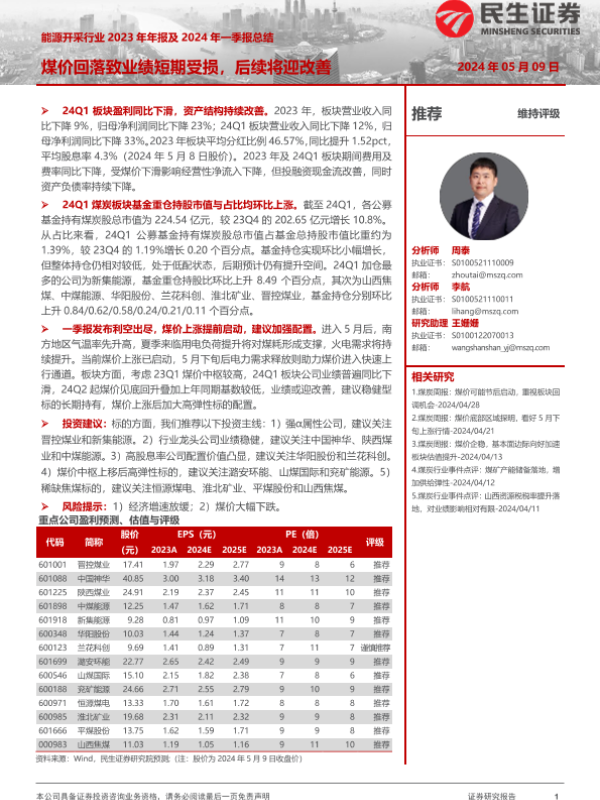 【民生证券】【20240509】能源开采行业2023年年报及2024年一季报总结-24页
