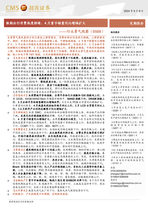 出境游 半导体 消费趋势 重卡销量 行业景气