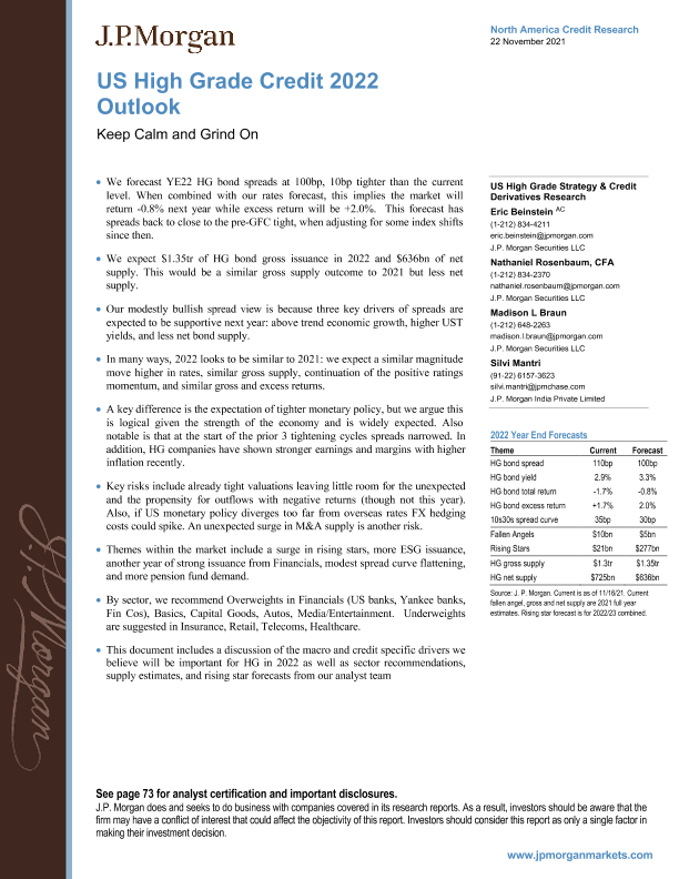 【J.P. Morgan】【20211122】美国优质信贷2022年展望:保持冷静,坚持下去-76页