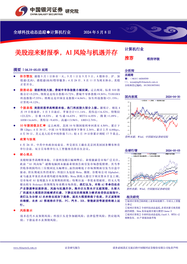 【银河证券】【20240508】计算机行业全球科技动态追踪:美股迎来财报季,AI风险与机遇并存-21页