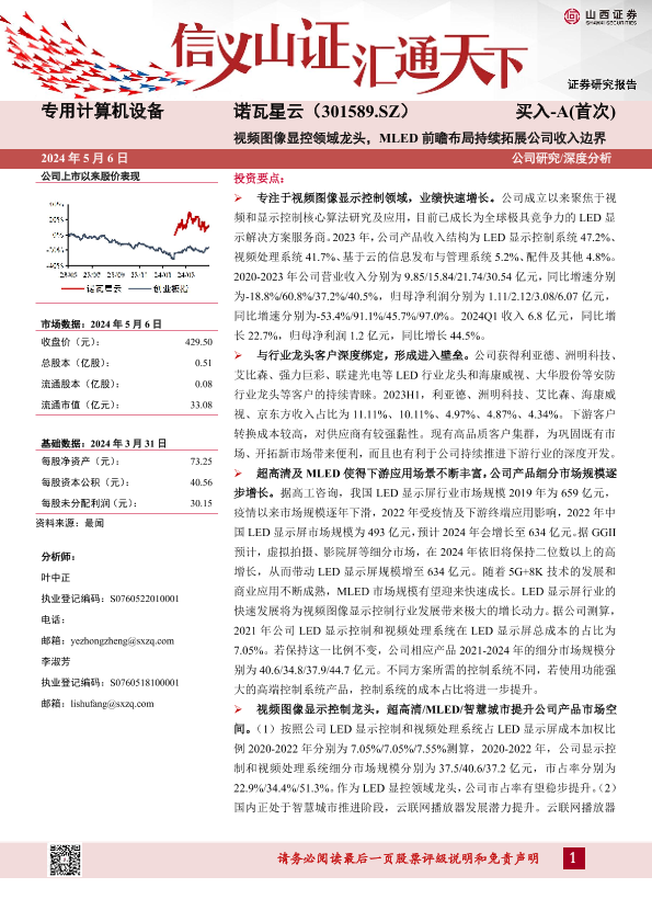 【山西证券】【20240506】诺瓦星云(301589)视频图像显控领域龙头,MLED前瞻布局持续拓展公司收入边界-30页