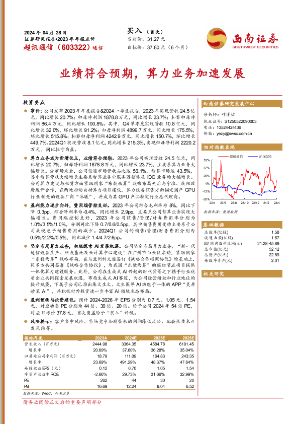 【西南证券】【20240428】超讯通信(603322)2023年年报点评:业绩符合预期,算力业务加速发展-15页