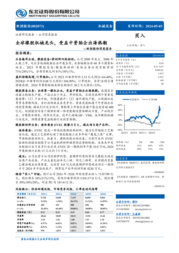 【东北证券】【20240505】全球橡胶机械龙头,受益中资胎企出海热潮---软控股份深度报告-31页