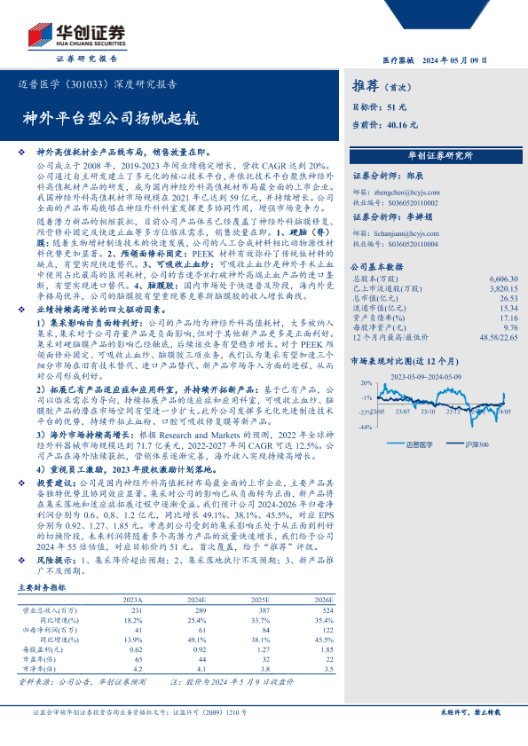 【华创证券】【20240509】迈普医学(301033)深度研究报告:神外平台型公司扬帆起航-23页