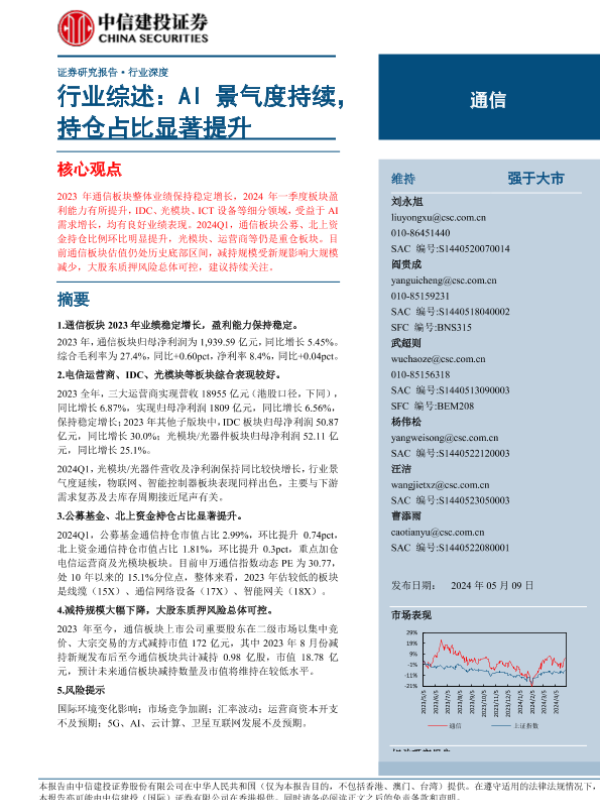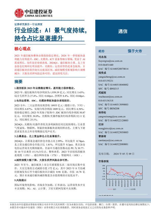 【中信建投证券】【20240509】通信行业综述:AI景气度持续,持仓占比显著提升-26页