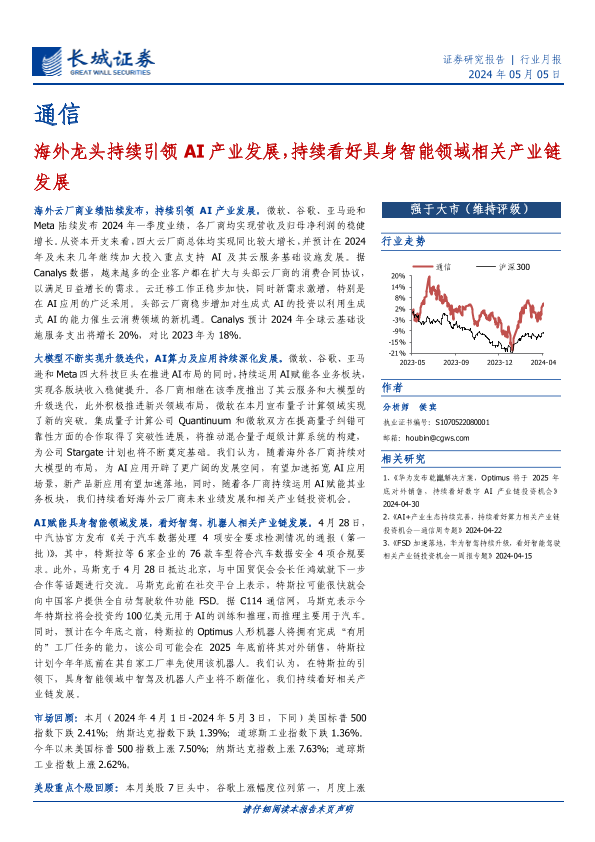 【长城证券】【20240505】通信行业月报:海外龙头持续引领AI产业发展,持续看好具身智能领域相关产业链发展-19页