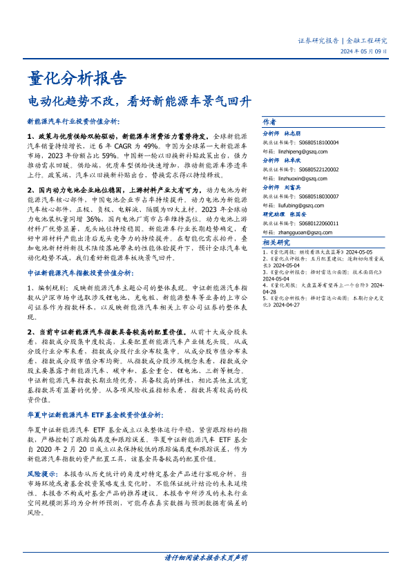 【国盛证券】【20240509】量化分析报告:电动化趋势不改,看好新能源车景气回升-25页