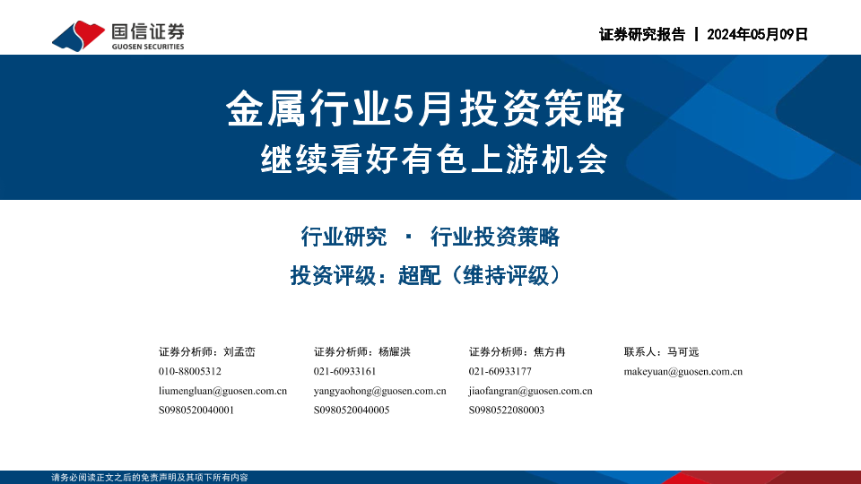 【国信证券】【20240509】金属行业5月投资策略:继续看好有色上游机会-28页