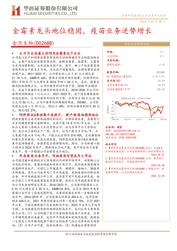 【华西证券】【20240508】金河生物(002688)金霉素龙头地位稳固,疫苗业务逆势增长-23页