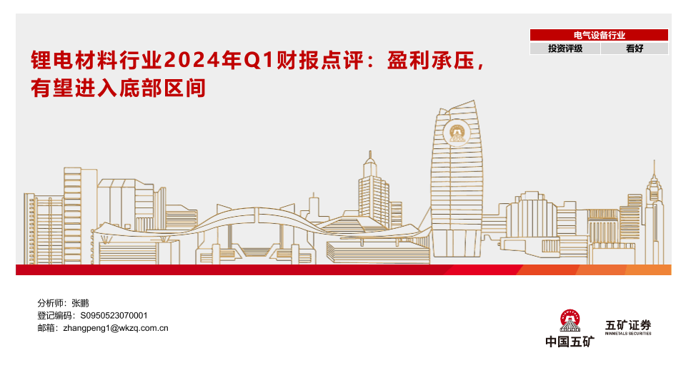 【五矿证券】【20240509】锂电材料行业2024年Q1财报点评:盈利承压,有望进入底部区间-16页