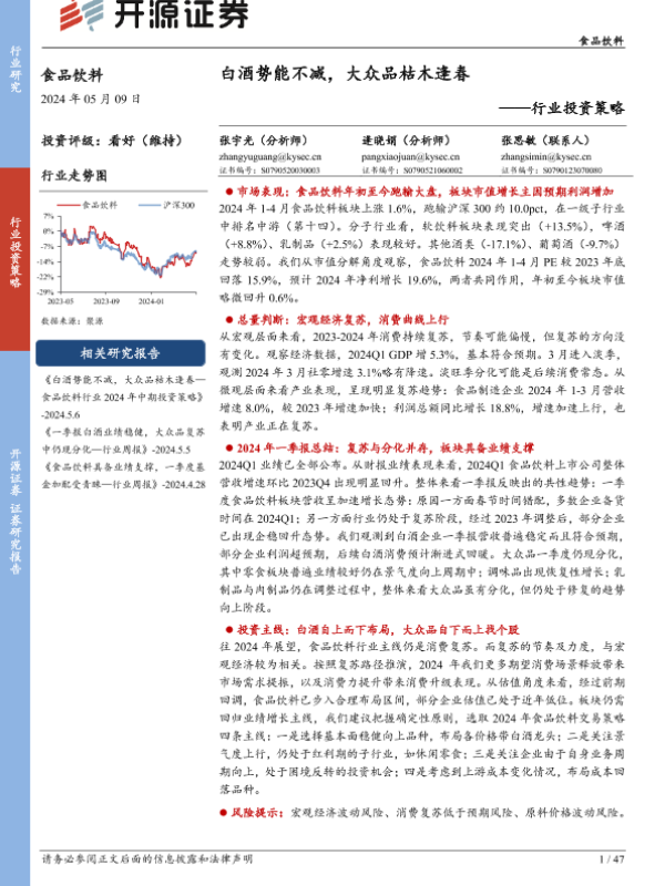 【开源证券】【20240509】食品饮料行业投资策略:白酒势能不减,大众品枯木逢春-47页