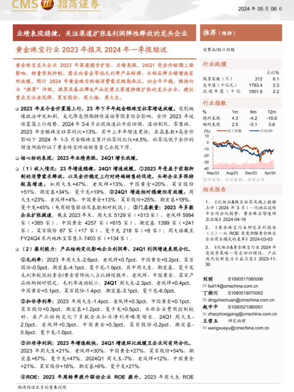 【海通证券】【20240506】黄金珠宝行业2023年报及2024年一季报综述-13页