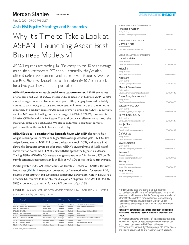 【Morgan Stanley】【20240101】Why It's Time to Take a Look at ASEAN - Launching Asean Best Business Models v1-74页
