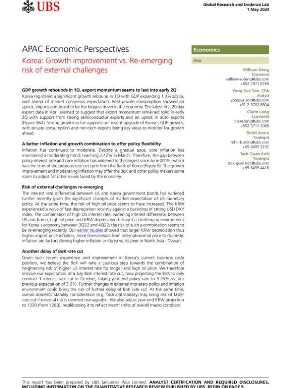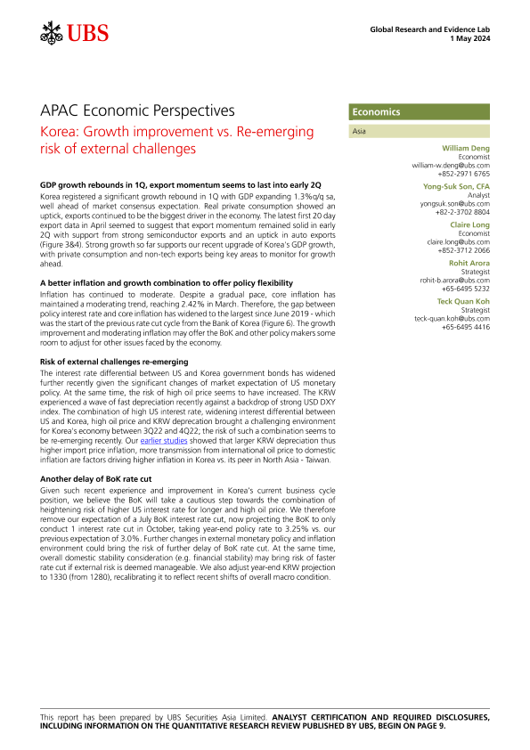 【UBS Securities Asia Limited】【20240501】APAC Economic Perspectives Korea Growth improvement vs. Re-emerging risk of external challenges-12页