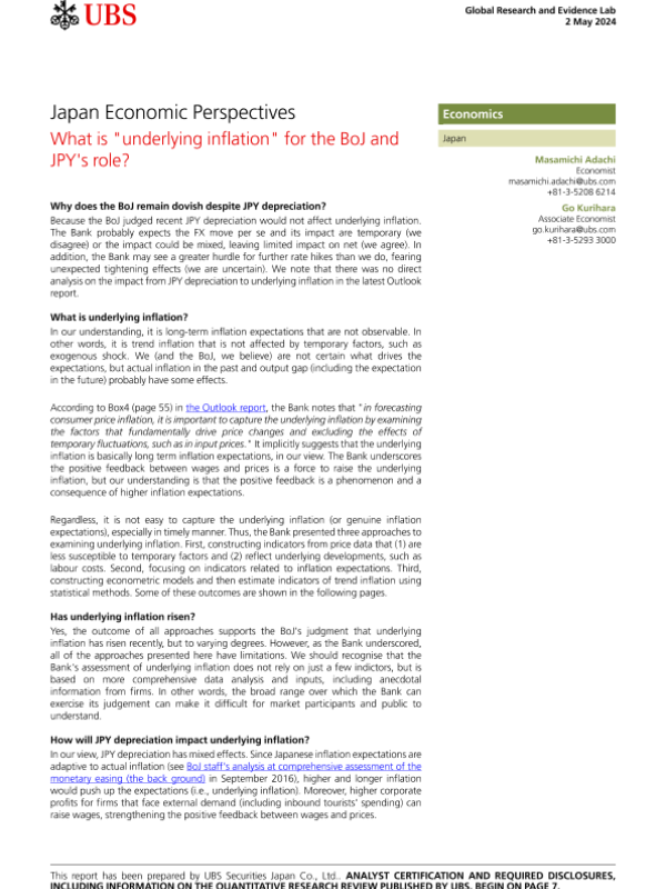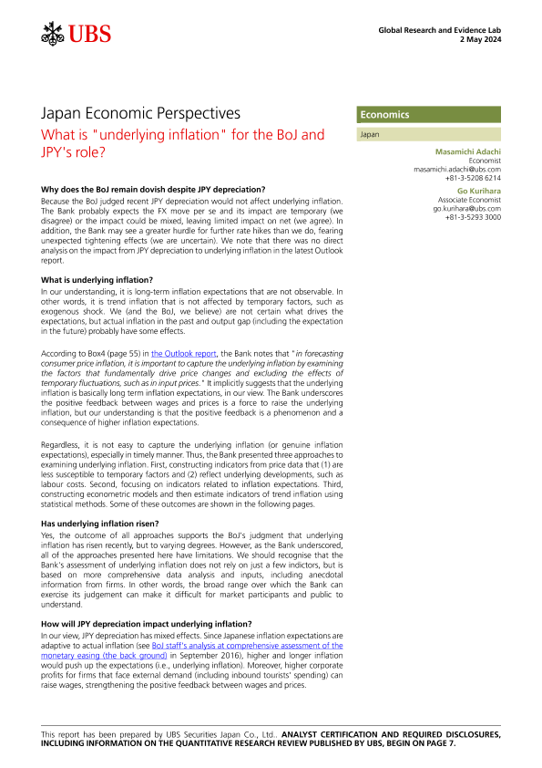 【UBS Securities Japan Co.&Ltd.】【20240502】Japan Economic Perspectives What is 'underlying inflation' for the BoJ and JPY's role?-11页