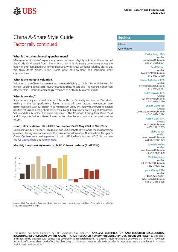 【UBS Securities Asia Limited】【20240502】China A-Share Style Guide Factor rally continued-16页