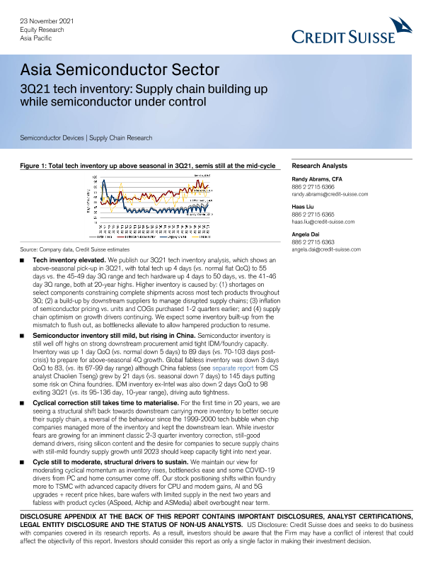 【瑞信(Credit Suisse)】【20211123】瑞信-亚太地区半导体行业-在控制半导体的同时建立供应链-23页
