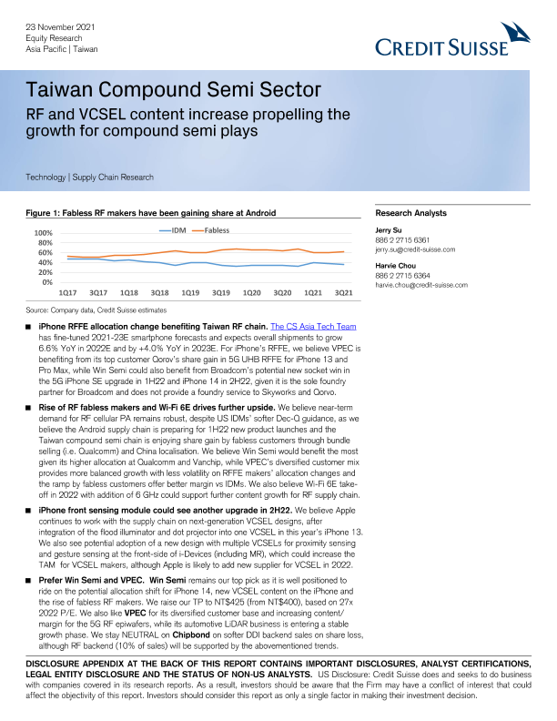 【瑞信】【20211123】瑞信-亚太地区科技行业-台湾地区:RF和VCSEL含量的增加促进了复合半导体的增长-21页