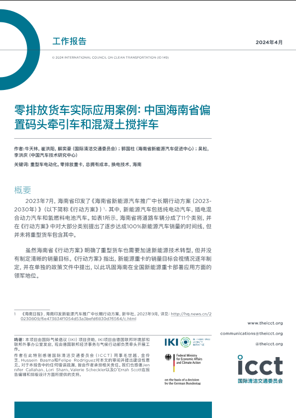 【国际清洁交通委员会】【20240401】零排放货车实际应用案例:中国海南省偏置码头牵引车和混凝土搅拌车-12页