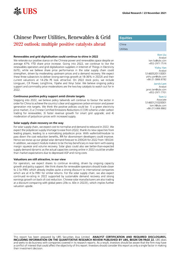 【瑞银】【20211123】中国公用事业行业-2022年的前景:未来有多个积极的催化剂-29页