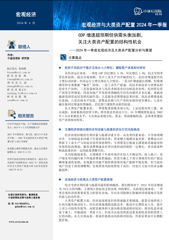【中诚信国际】【20240401】GDP增速超预期但供需失衡加剧,关注大类资产配置的结构性机会-23页