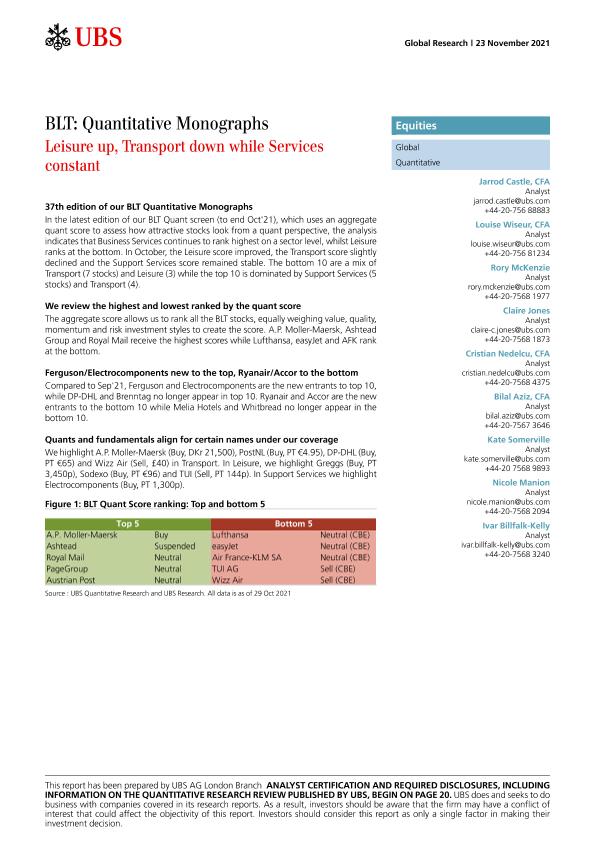 【瑞银】【20211123】瑞银-全球量化策略-定量评估:休闲上升,交通下降,服务不变-26页