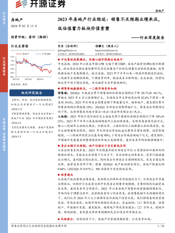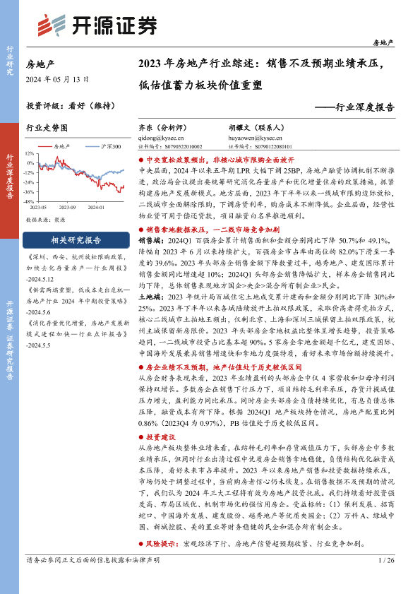 【开源证券】【20240513】2023年房地产行业综述:销售不及预期业绩承压,低估值蓄力板块价值重塑-26页