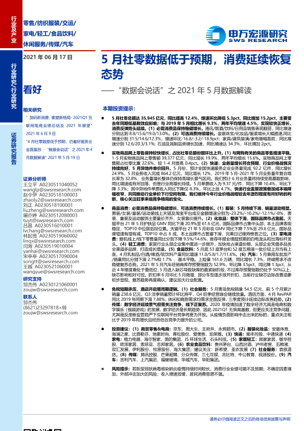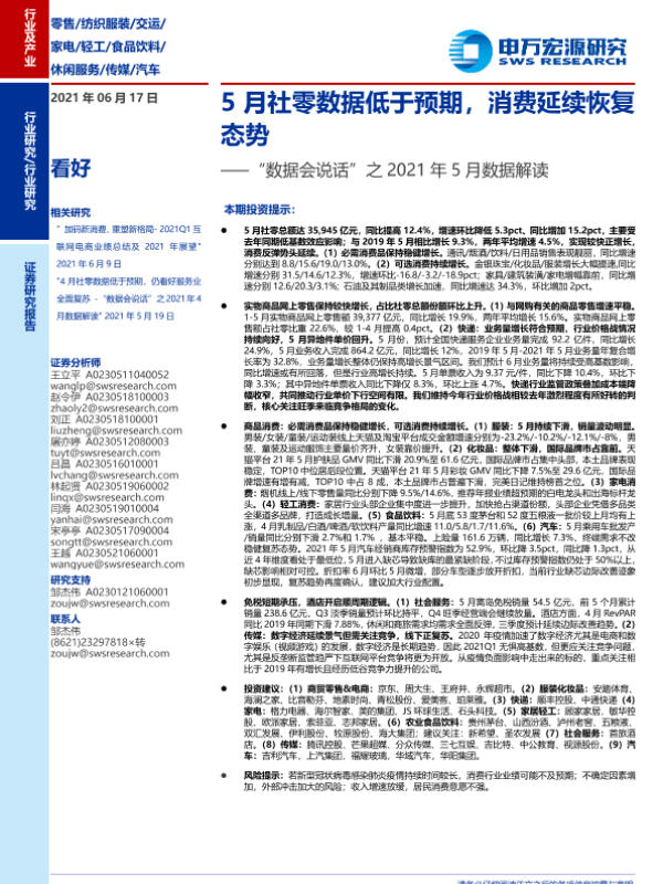 【申万宏源】【20210617】零售行业“数据会说话”之2021年5月数据解读:5月社零数据低于预期,消费延续恢复态势-75页