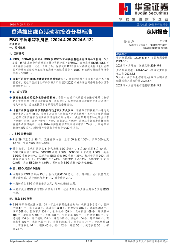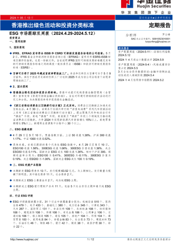 【华金证券】【20240513】ESG市场跟踪双周报(2024.4.29-2024.5.12)-12页