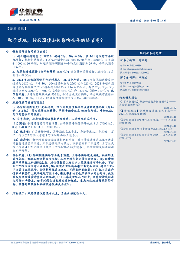 【华创证券】【20240513】【债券日报】靴子落地,特别国债如何影响全年供给节奏?-11页