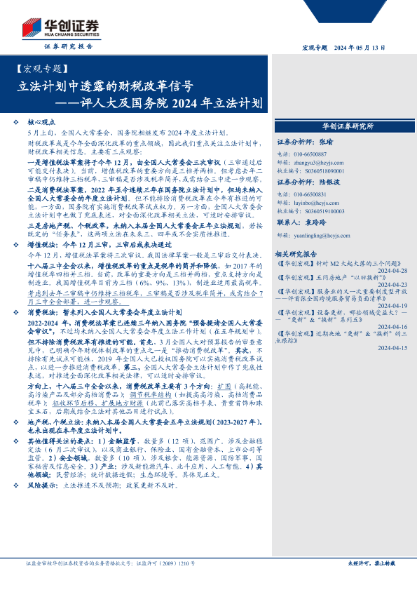 【华创证券】【20240513】评人大及国务院2024年立法计划:立法计划中透露的财税改革信号-15页