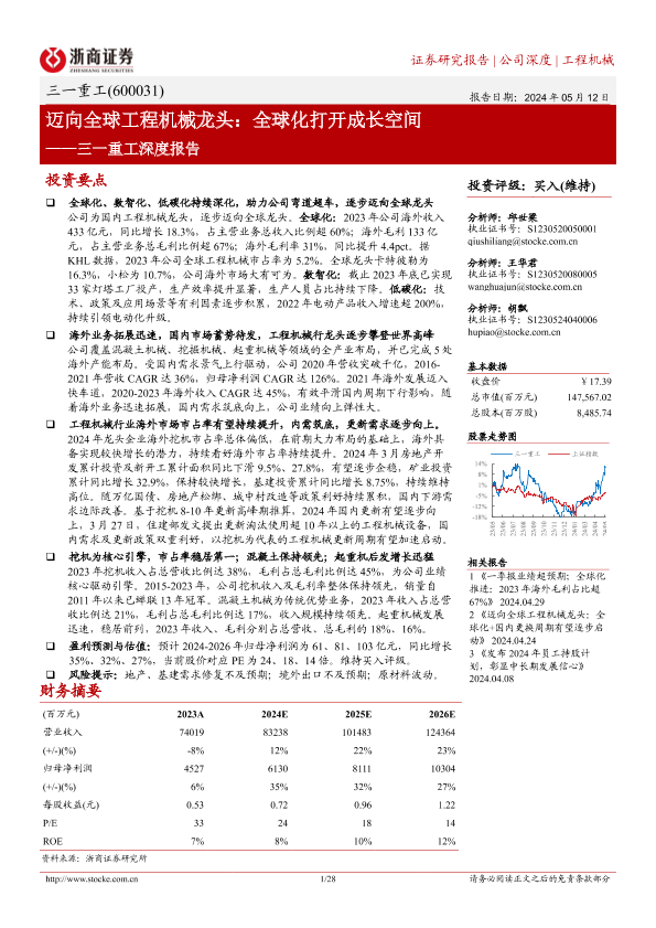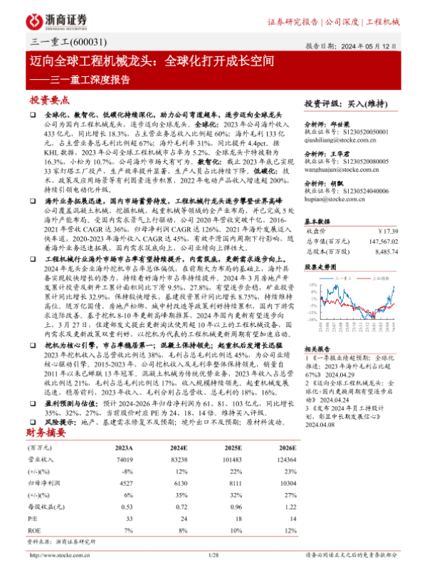 【浙商证券】【20240512】三一重工(600031)深度报告:迈向全球工程机械龙头:全球化打开成长空间-28页